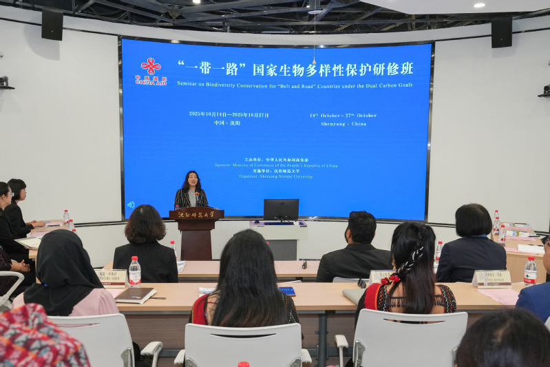 10月14日,由商务部主办、我校承办的“‘一带一路’国家生物多样性保护研修班”开班仪式在知行楼案例教学中心举行。来自哥斯达黎加、约旦、马来西亚、马尔代夫、尼泊尔、南非等6个国家的31名学员代表齐聚沈阳,共同开启在生物多样性保护领域交流协作的新篇章。我校副校长佟玉平出席仪式并致辞。国际交流合作处、生命科学学院相关负责人参加开班仪式。开班仪式由国际交流合作处副处长胡泊主持。
